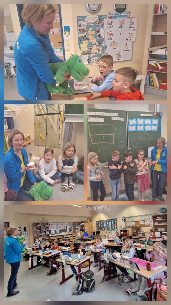 Am 03.03.2025 wurden die Schüler:innen der ersten und zweiten Schulstufe von Kroko besucht. Kroko kam, um den Schüler:innen seine neue Zahnspange zu zeigen. Den Kindern wurde erklärt, warum man eine Zahnspange braucht und wie sie angepasst wird. Außerdem wurde anhand eines Seils und einigen Kindern demonstriert, wie es mit Hilfe einer Zahnspange gelingt, die Zähne zu begradigen. Das machte sichtlich großen Spaß. Zum Schluss wurden noch eifrig die Zähne geputzt.