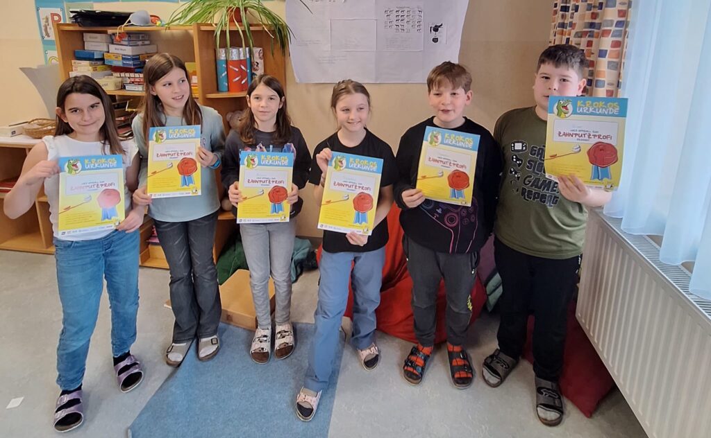 Für die Schüler:innen der vierten Schulstufe war es der letzte Besuch von Kroko. Da sie nun als wahre Zahnputzprofis gelten, erhielten sie eine Urkunde.